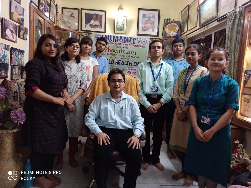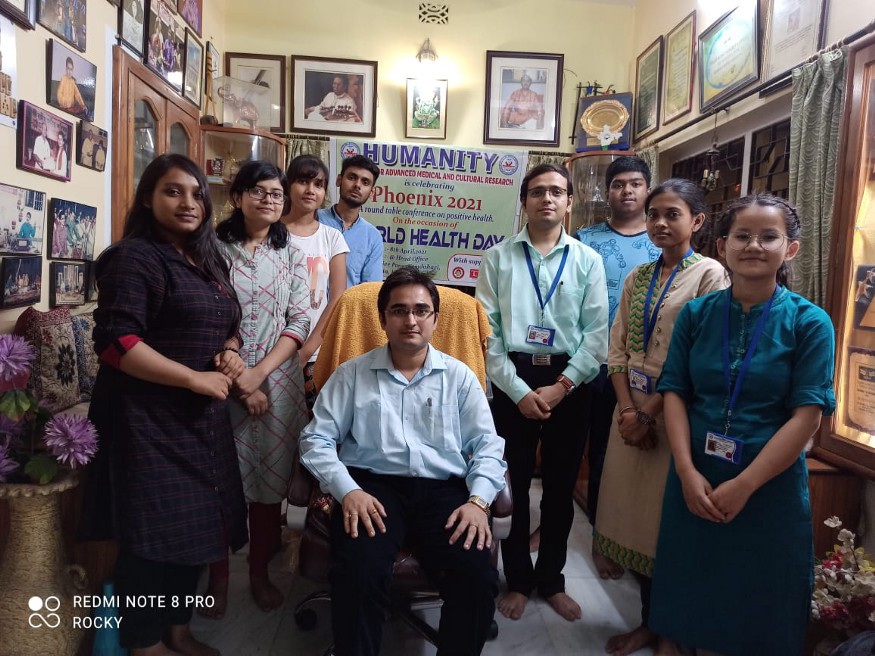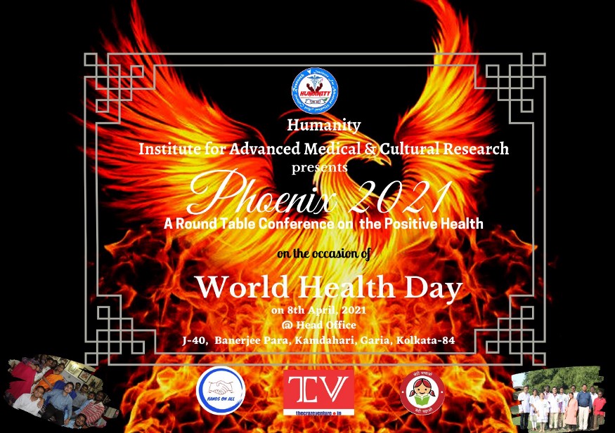 Based on this scenario, an interdisciplinary round table conference was organized at Humanity, Institute for Advanced Medical & Cultural Research, Kolkata at their head office on the occasion of World Health Day with the theme of Phoenix 2021 on 08th April 2021. Phoenix is a Greek mythological bird that re-appears from its burnt ashes lighting up the energy of wisdom and truth to reborn in this world of the living. The conference and the so-called mirage of positive health were similar to the theme of their program. In the discussion, several peoples from several backgrounds appeared to speak up and find out the solution to these major health issues in life. Dr Sinchan Das, Secretary of Humanity, Institute for Advanced Medical & Cultural Research chaired the complete conference with his opening words to discuss the main culprit of today’s health condition. Scholars and students of HIAMCR, Students from Rabindranath Tagore International Institute for Cardiac Sciences and College of Paramedical and Allied Health Sciences, West Bengal, and staff of Vivekanand Institute for Postgraduate Medical Sciences gathered together on identifying the issues in detail.